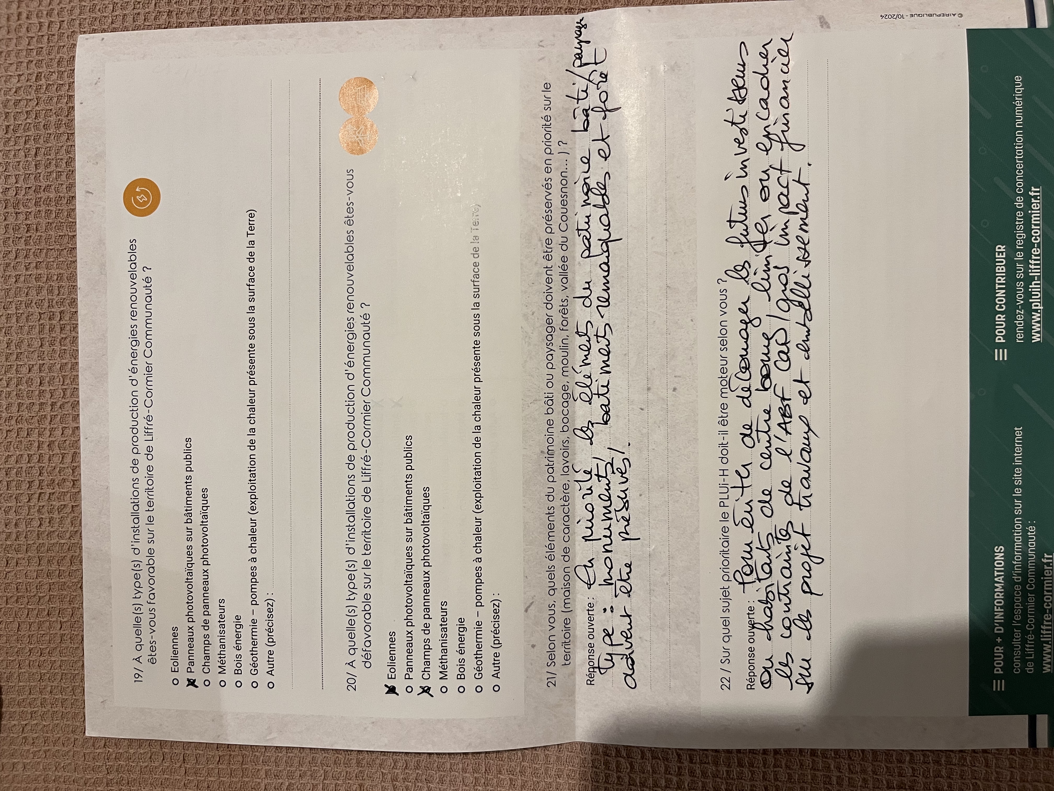 Dans le cadre du nouveau PLUiH de Liffré Cormier Communauté, il serait appréciable de considérer l'arrêt de l'artificialisation des terres naturelles et agricoles. De ce fait, d'arrêter l'expansion des villes toujours plus loin des centres-villes.
