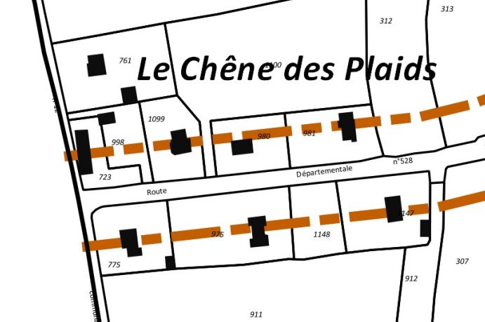 Sur le PLU actuel de Chasné, notre hameau du Chêne des Plaids, constitué d'une dizaine de maisons, est classé en zone Agricole non constructible.
