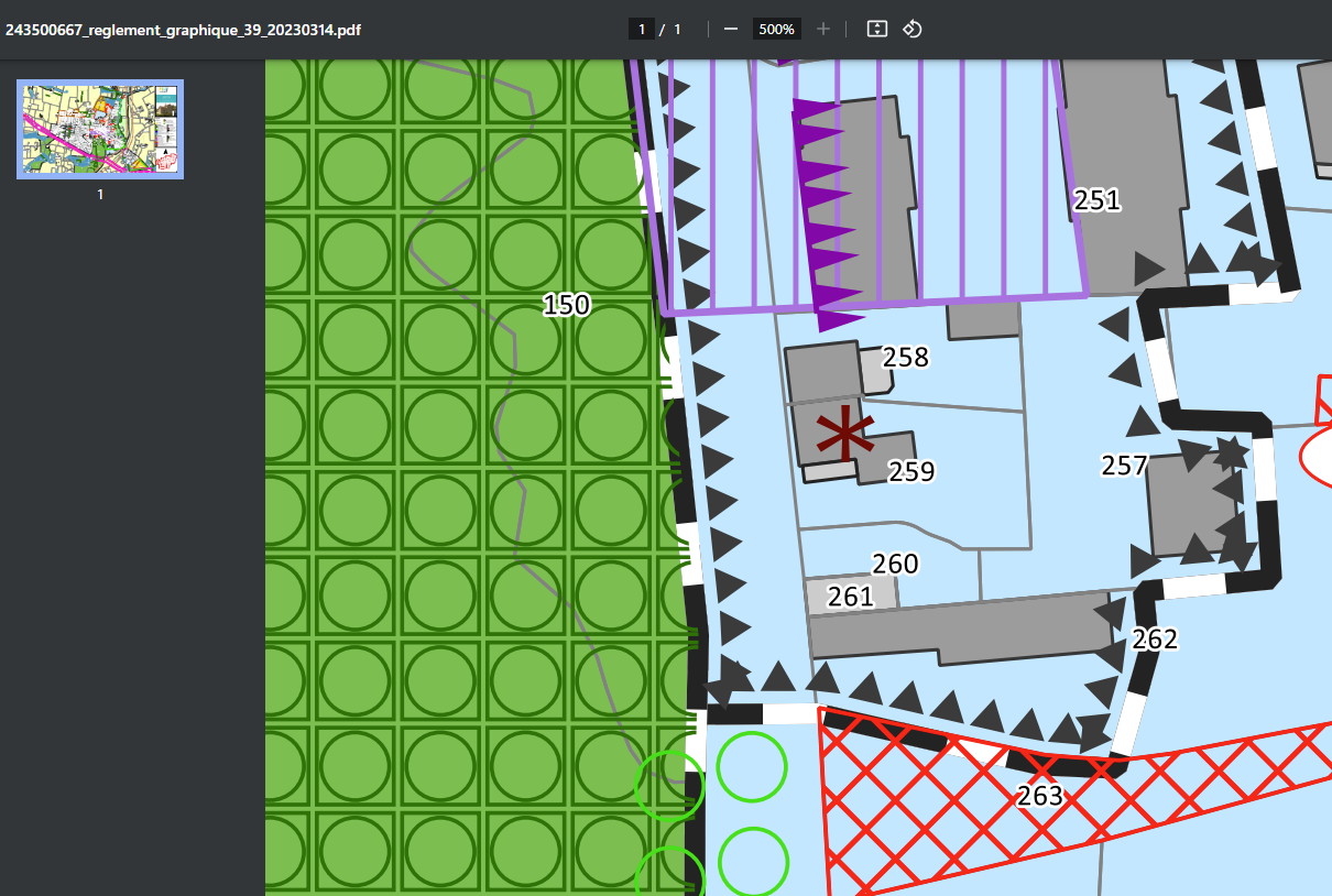 Propriétaire de la parcelle AD 258, je souhaiterai que, dans le cadre de la révision actuelle du PLUi, le règlement graphique (planche 39) soit modifié avec une correction de la prescription associée à cette parcelle :