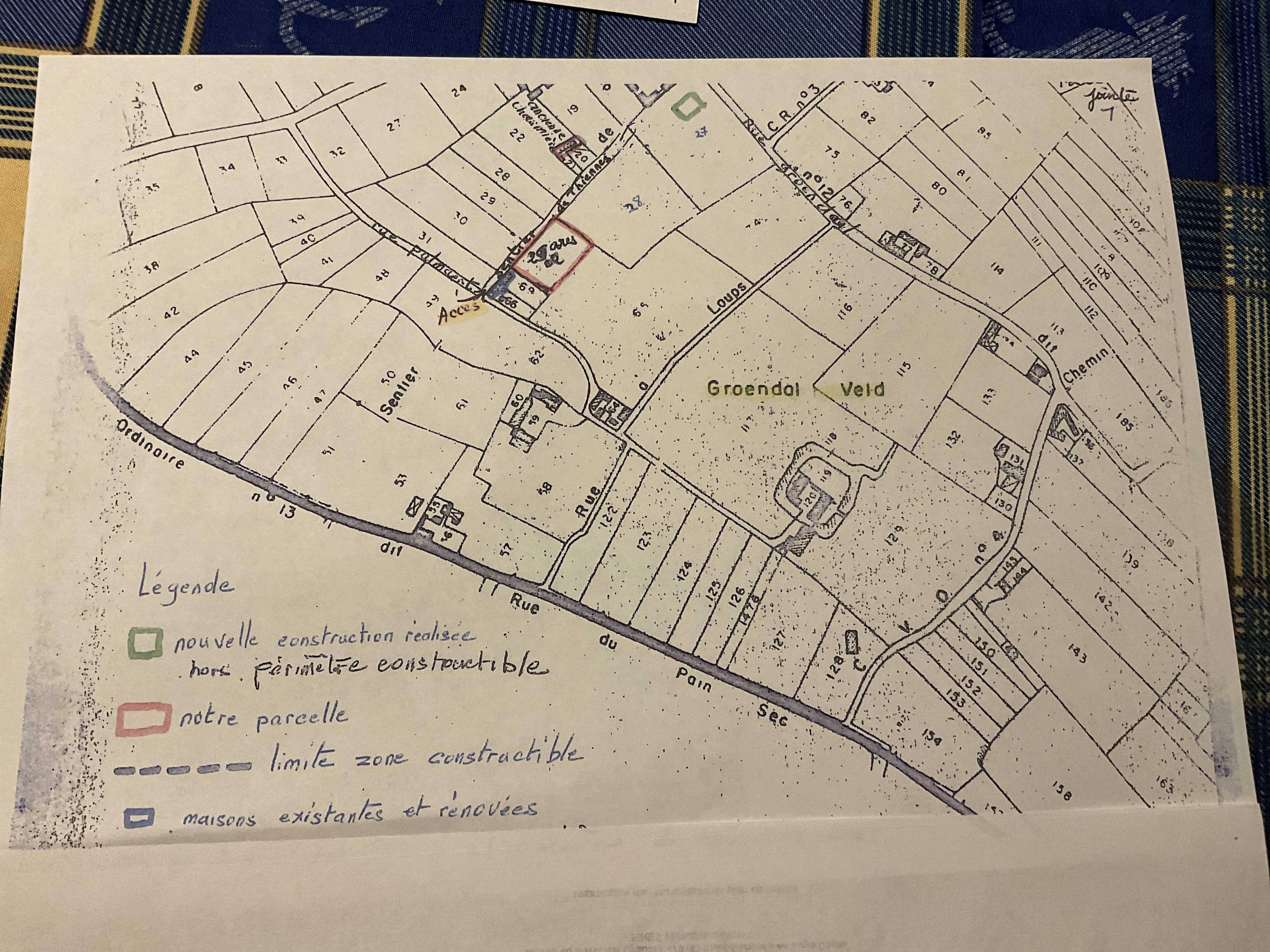 Aussi, conformément à la suggestion de Monsieur Raeckelboom, et à l’accord de principe de Monsieur le Maire de Lynde, je sollicite par la présente, une réduction de la surface classée en prairie sur ces deux terrains, afin de pouvoir exploiter la partie restante constructible dans le respect des règles d’urbanisme en vigueur, tout en préservant l’équilibre environnemental du secteur.