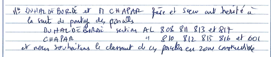 Nous souhaitons le classement de ces parcelles en zone constructible.
