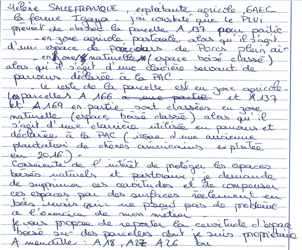 Les parcelles A166, A137 et A169 en partie sont classées en zone naturelle (espace boisé classé) alors qu'il s'agit d'une clairière utilisée en parcours [.....]