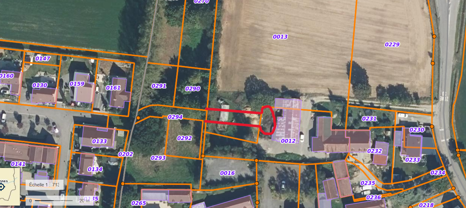 J'ajoute enfin que la voie d'accès me contraindrait à abattre une partie d'un hangar agricole qui sert de garage et d'abris pour mes animaux (boeuf, brebis, poules) et sur lequel j'étudie la possibilité d'installer des panneaux solaires comme l'encourage la commune via son cadastre solaire.