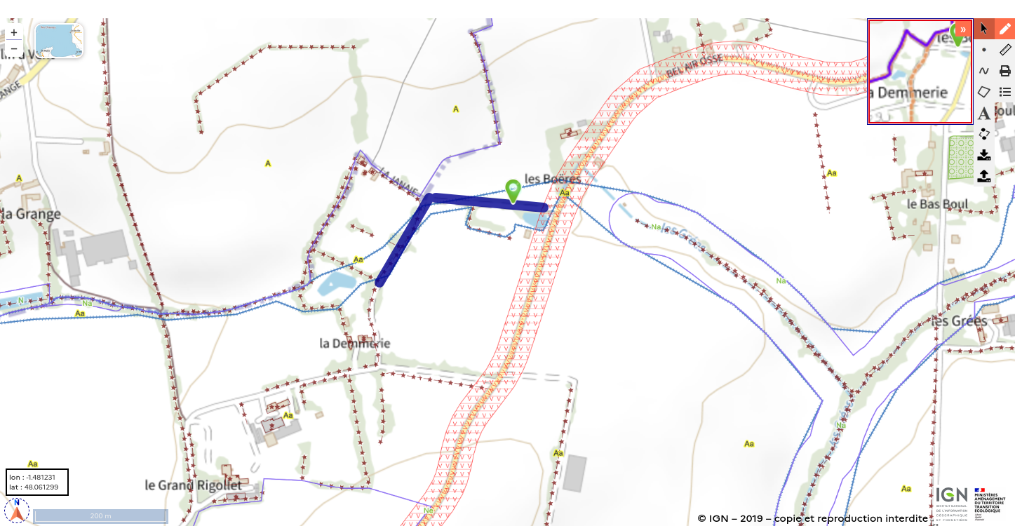 Je vous joins un croquis réalisé rapidement à partir du géoportail et d'une image google.