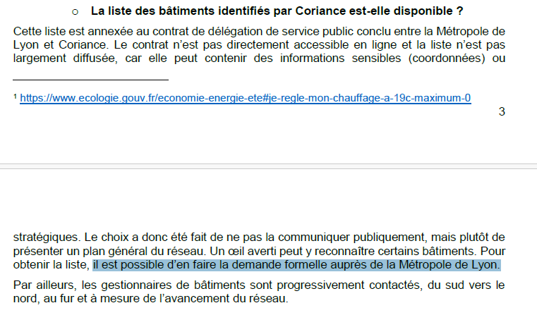 Monsieur Fangeat,,Vous étiez présent à la réunion publique du 13/01/2026 à St Genis Laval en tant que représentant de la Métropole de Lyon et c'est à ce titre que nousnprenons contact avec vous? En page 4 du compte rendu de la réunion publique du 22/05/2025 qui s'est tenue à Oullins-Pierre-Bénite, il est indiqué qu'il est possible de faire une demande formelle auprès de la Métropole de Lyon afin d'obtenir la listedes bâtiments identifiés par Coriance
