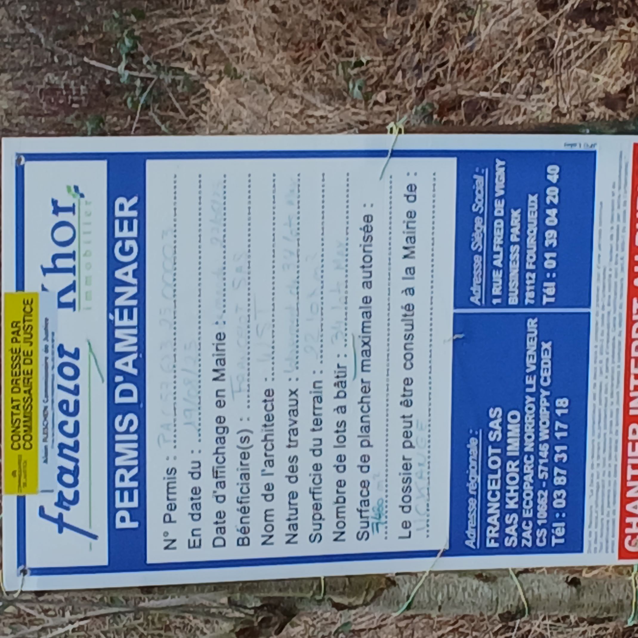 A signaler lisibilité des informations sur le panneau du permis de construire (ph en PJ)