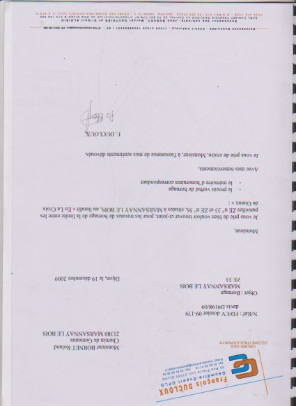 Notre locataire ainsi que le propriétaire du champ Monsieur GERMANIC Claude, qui nous récupère sur sa grande parcelle WC 0018 pour 0,53 ha nous confortent dans notre décision de contester vos découpages. (Voir photo ci-jointe de la parcelle en biais).