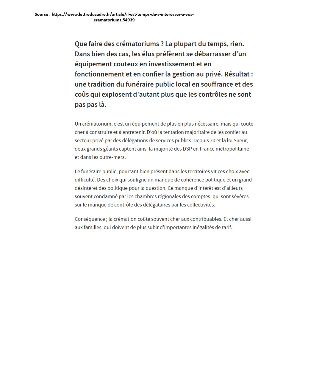 Par contre je valide le fait que le projet crématorium pour notre région est insdispensable mais pourquoi la ville de Langon ?