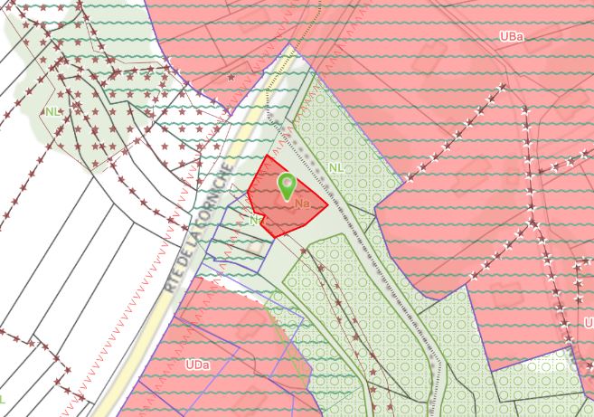 À ce jour, la parcelle D250 est classée en zone Na (zone naturelle). Toutefois, l’analyse du plan de zonage révèle un découpage particulièrement morcelé, caractérisé par l’imbrication étroite de zones naturelles et urbaines, sans rupture physique ni paysagère identifiable.